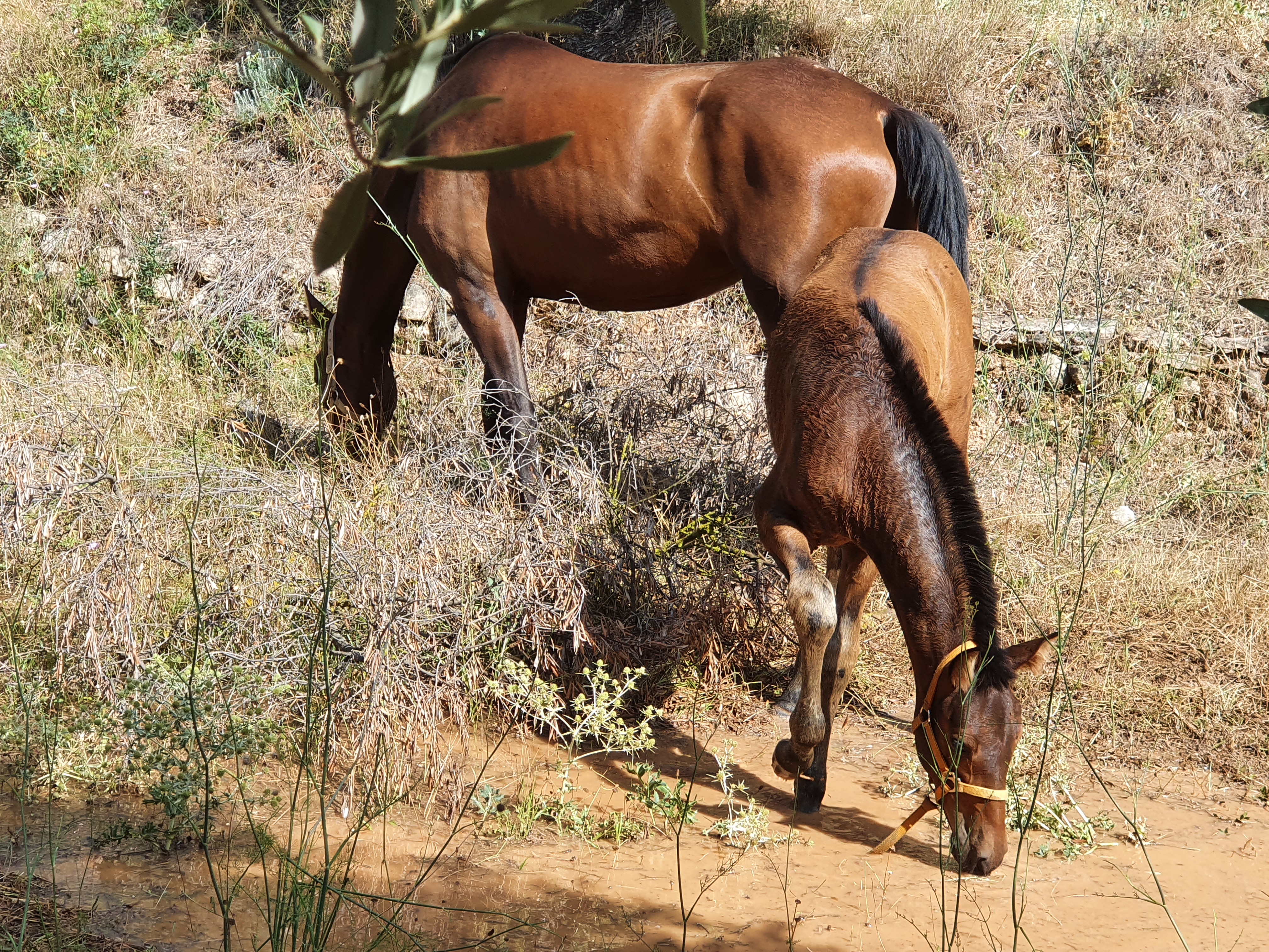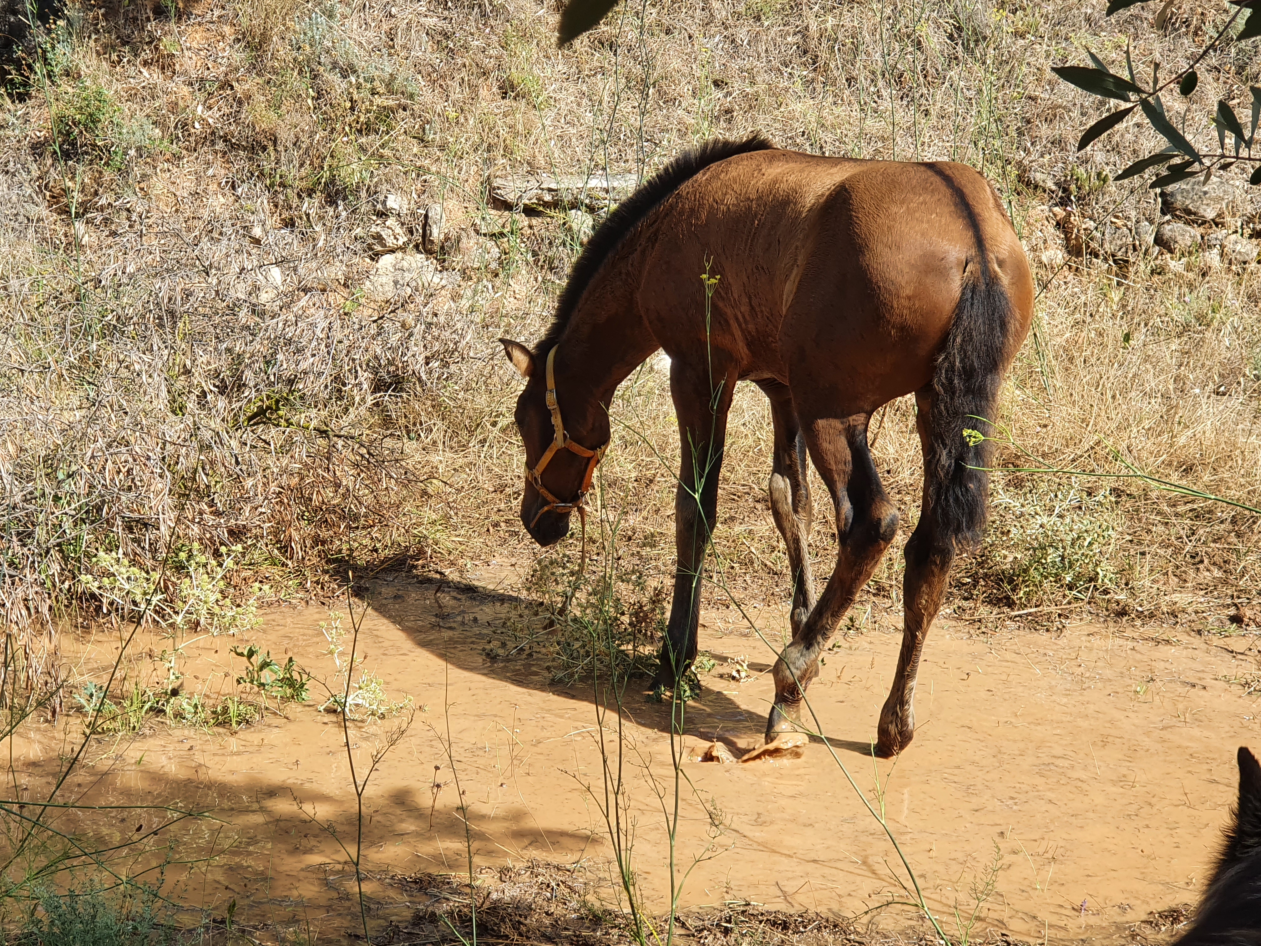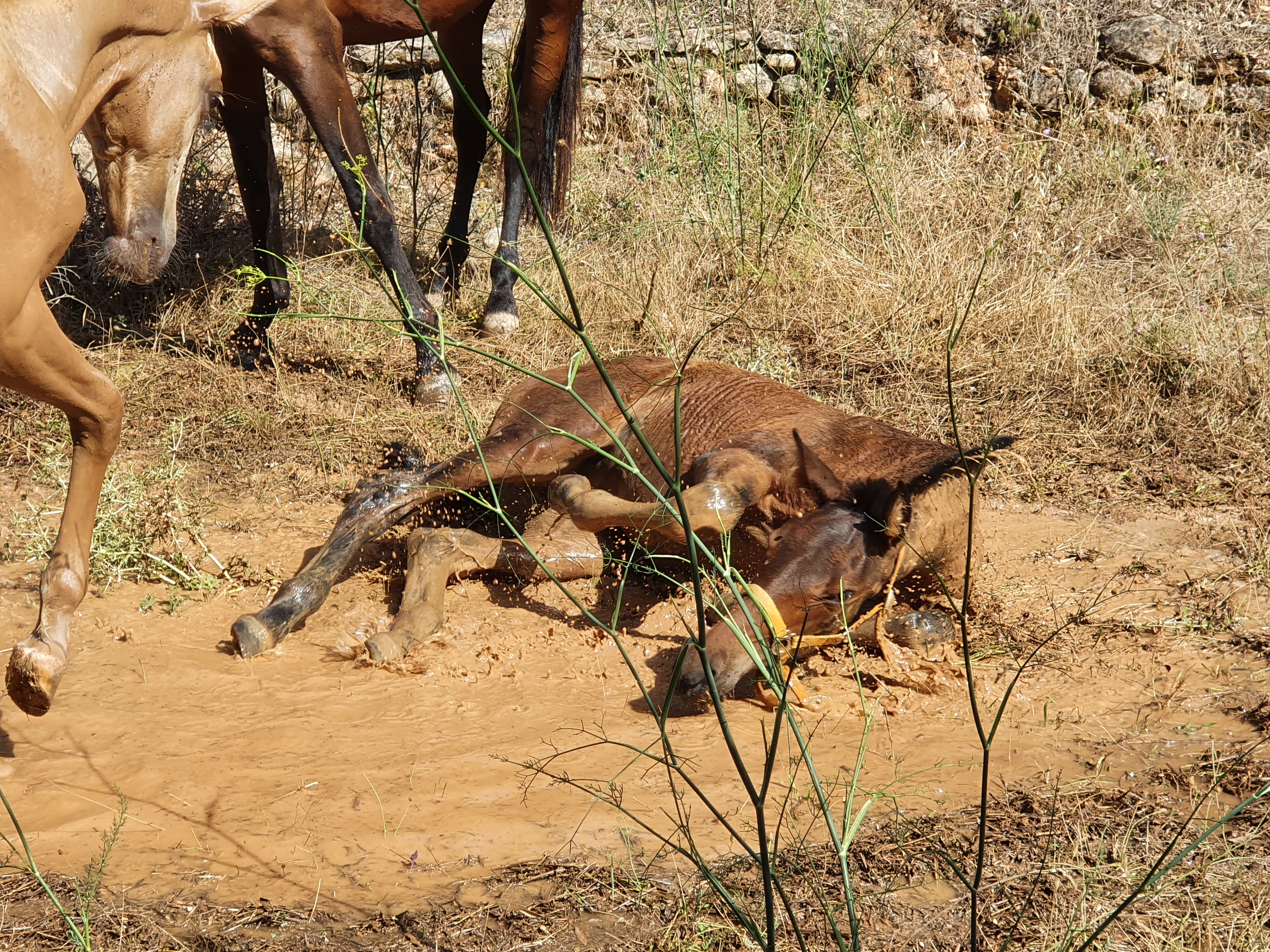 La première pluie pour nos poulains! On peut dire qu’ils ont apprécié. L’après-midi entière autour de la gouille. Les grands ont commencé, mais les petits ont suivi volontiers.